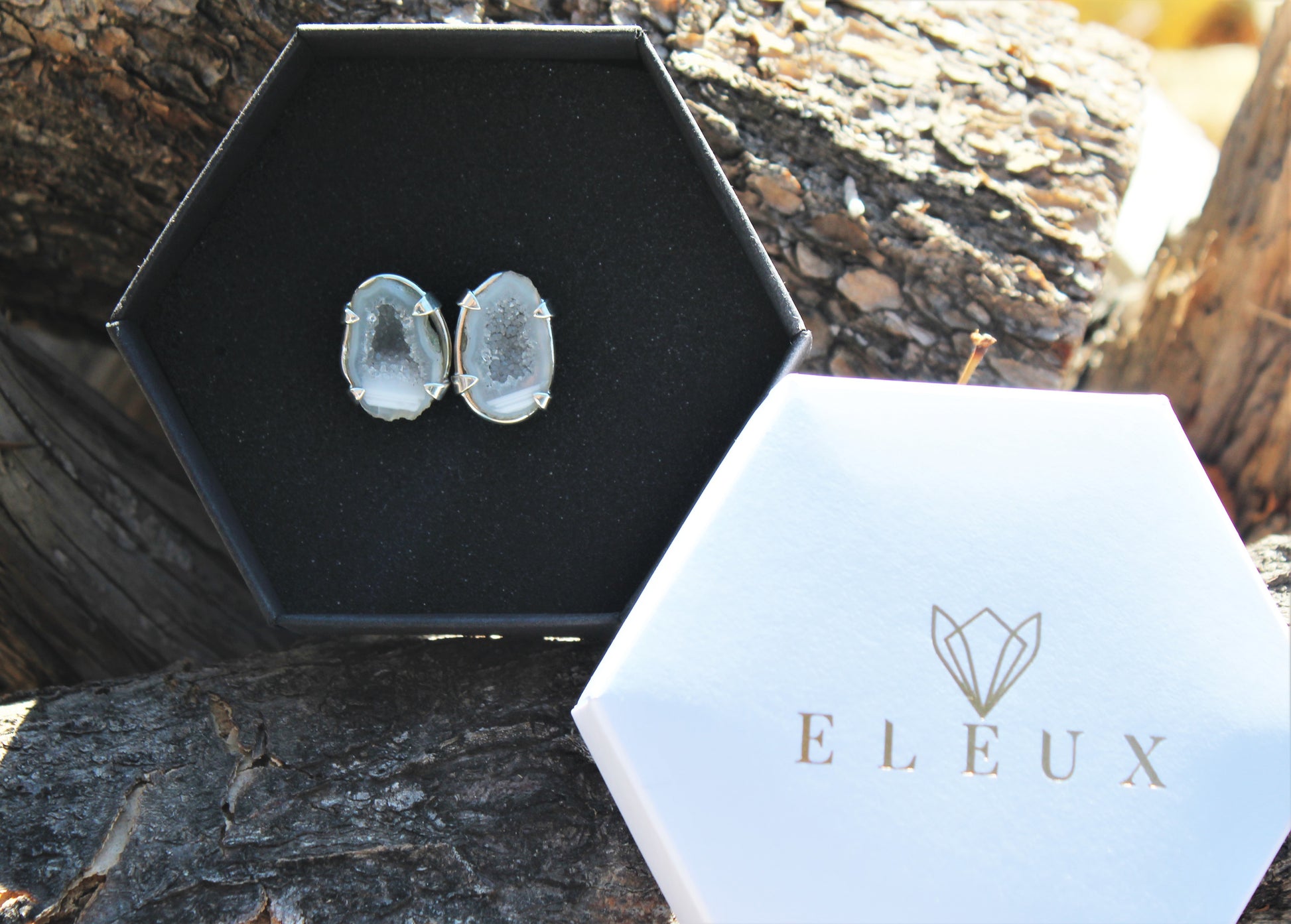 This design can be made in any geode size/color or metal type. Please email hello@eleux.com if there is something specific you would like made. Allow for approximately 4 weeks for production to source materials and account for manufacturing time and shipping.