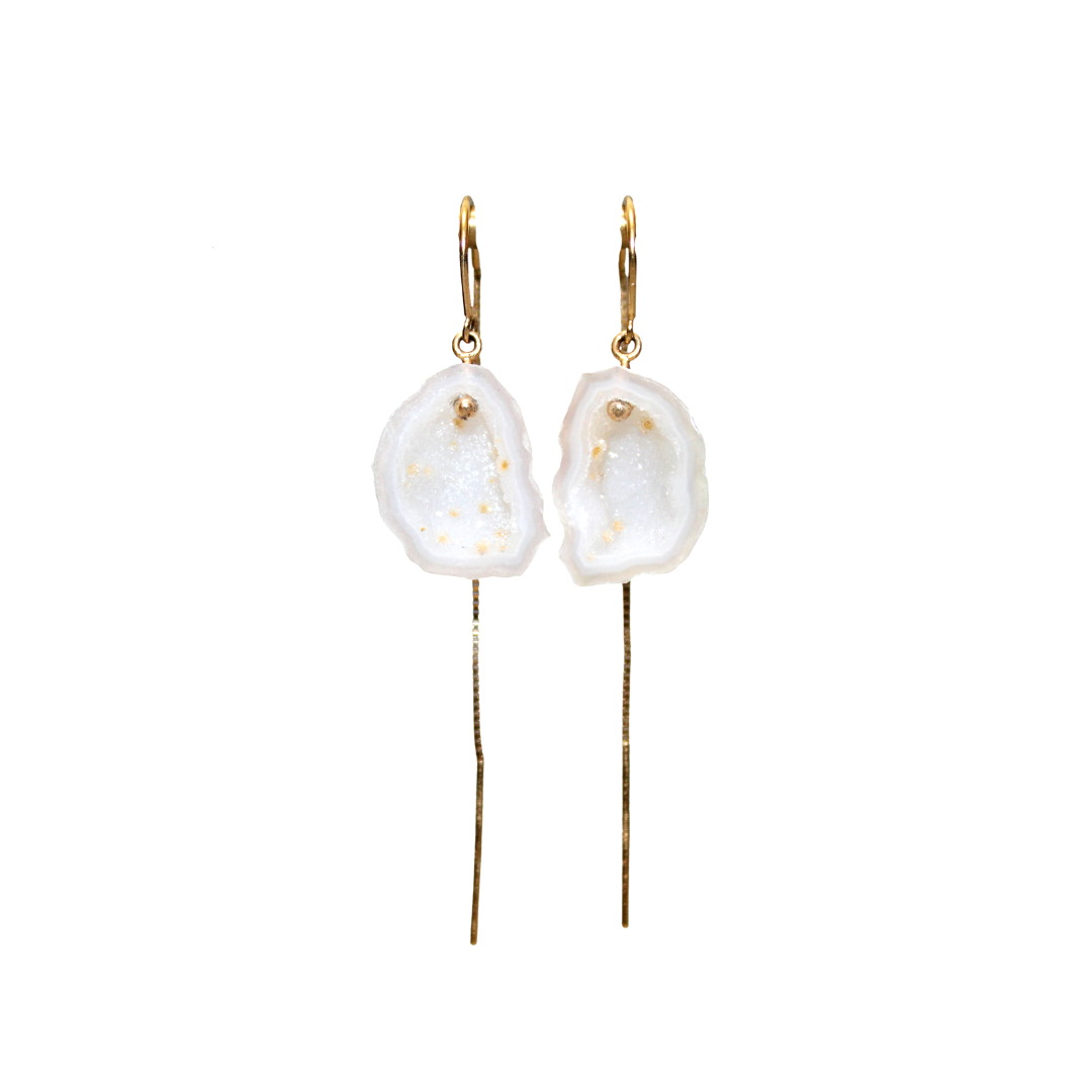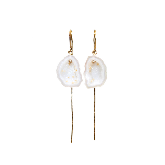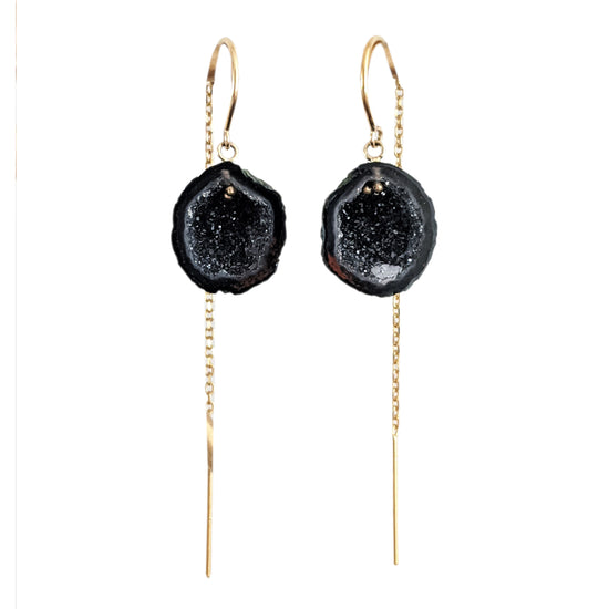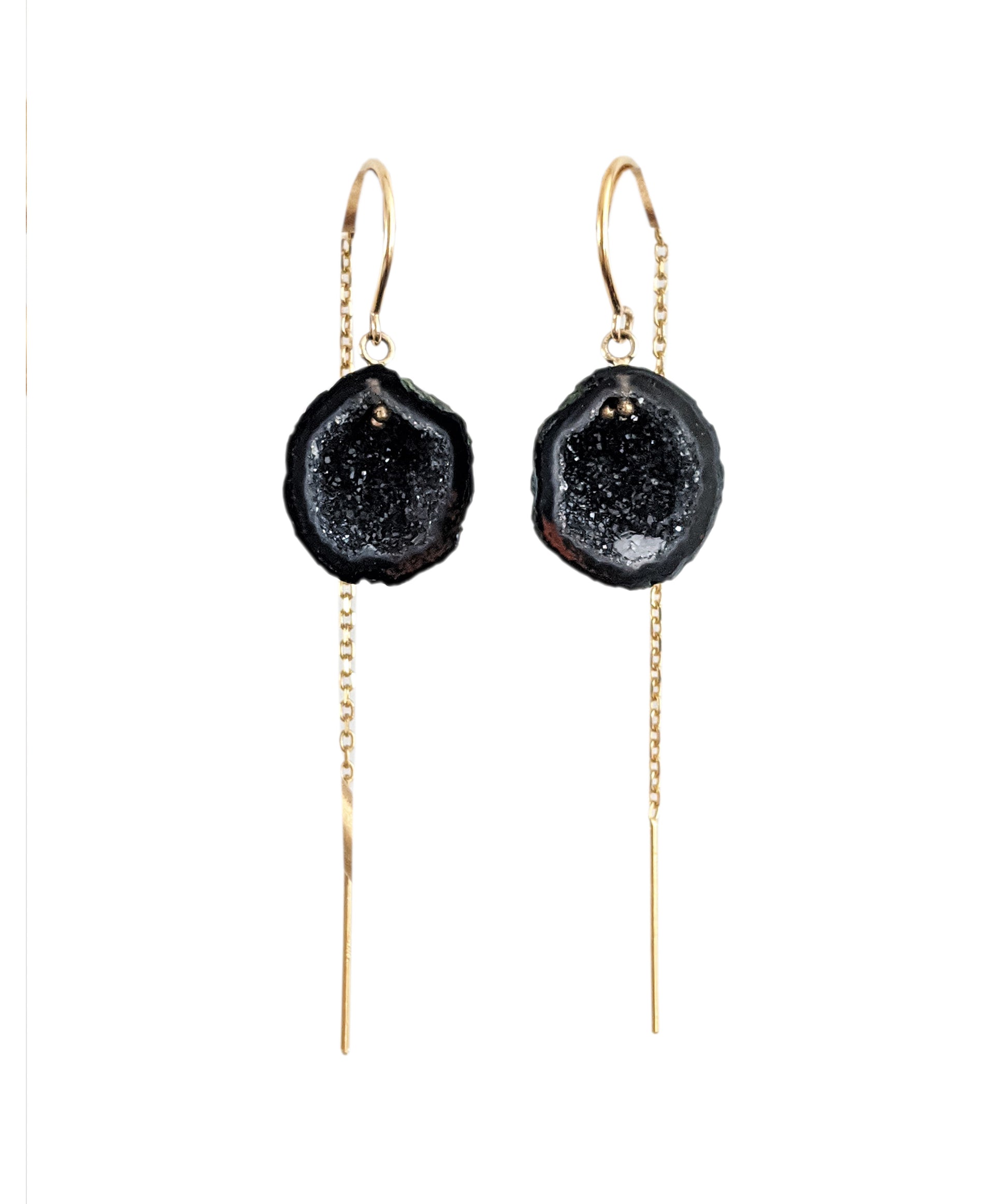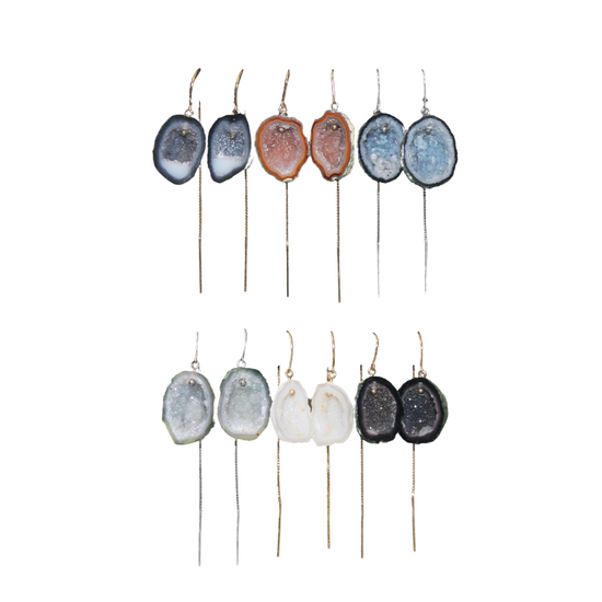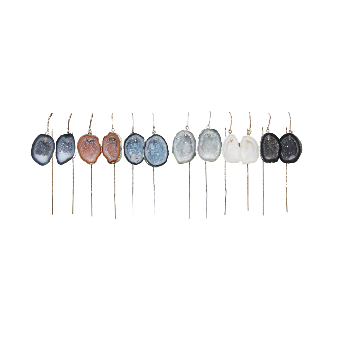 Threaders are a lightweight style of earring that sit comfortably in the ear. Just simply push the end through your piercing and slide it through until the curve sits in your ear.