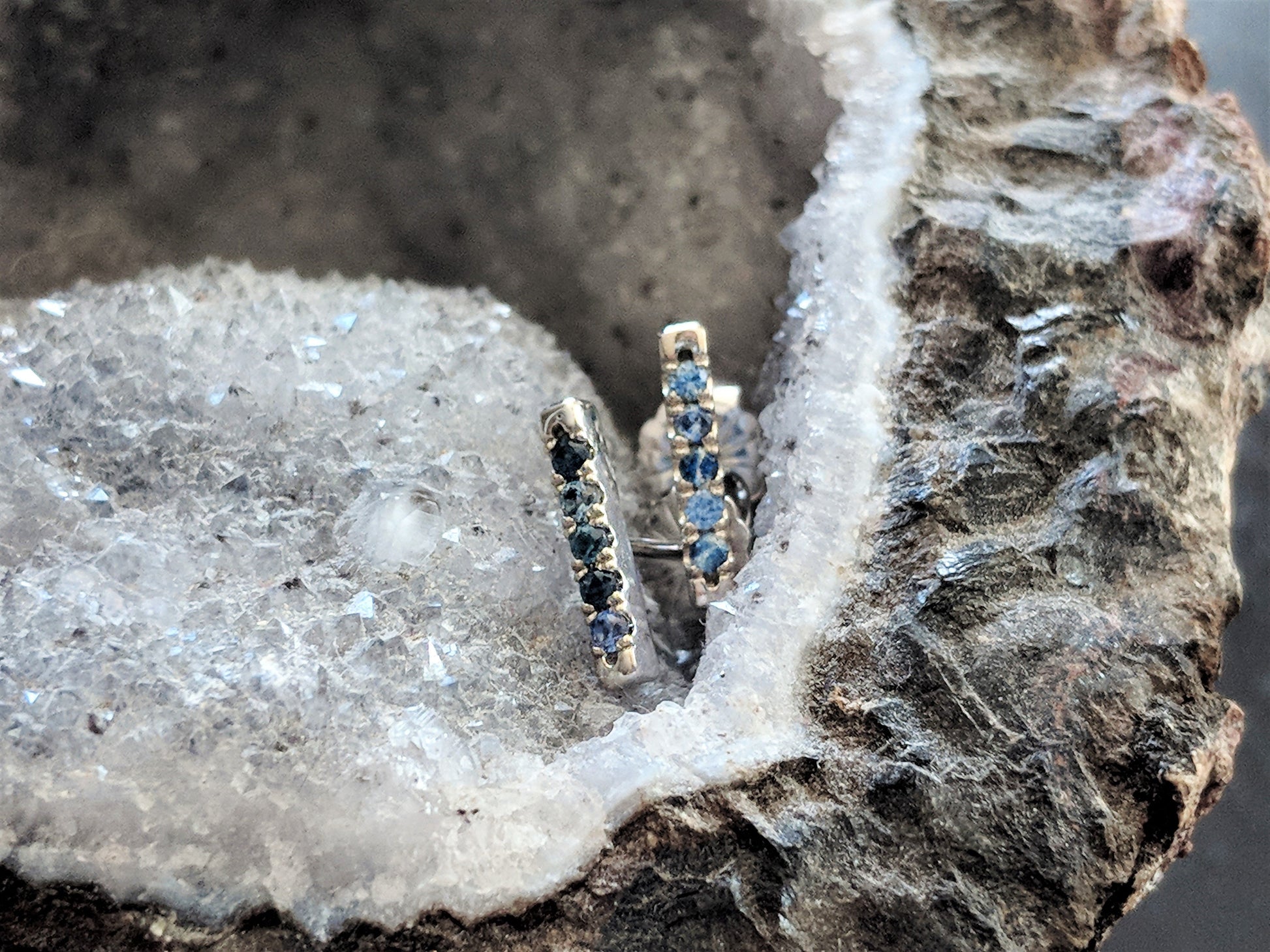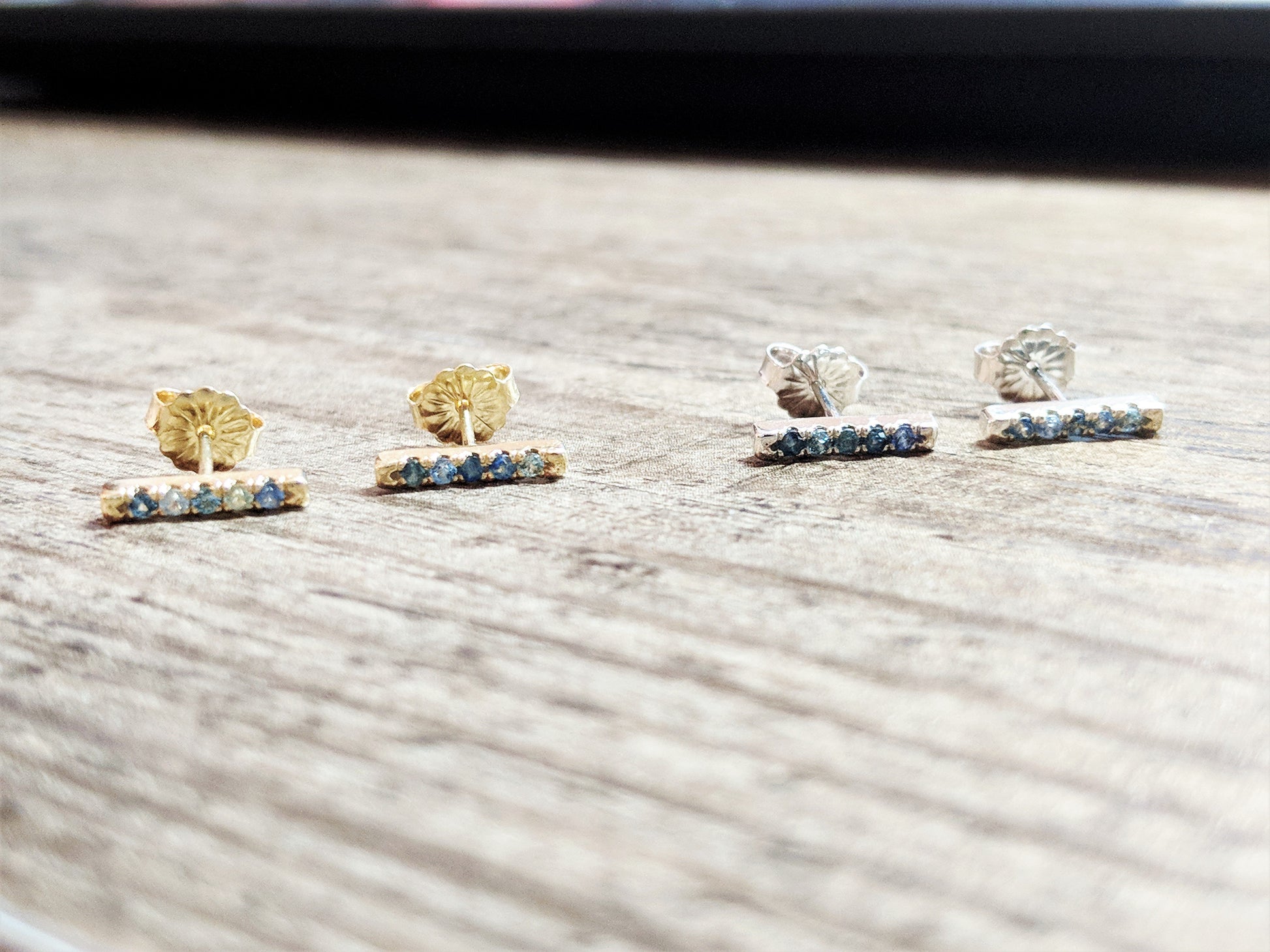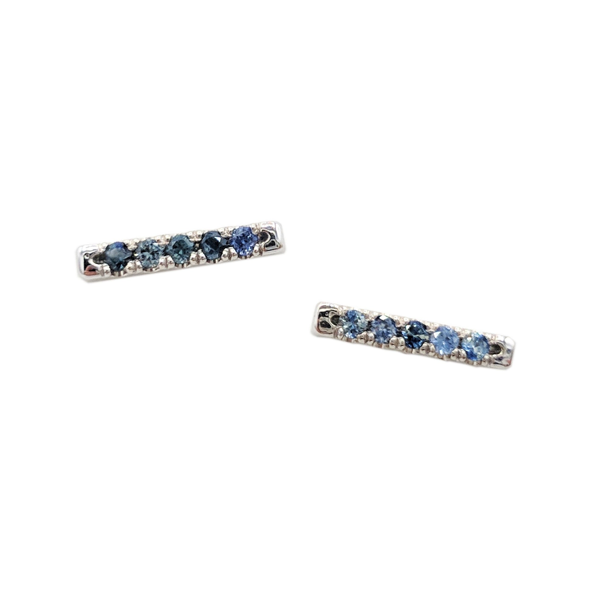A fun take on your traditional bar earring using various shades of blue and green sapphires