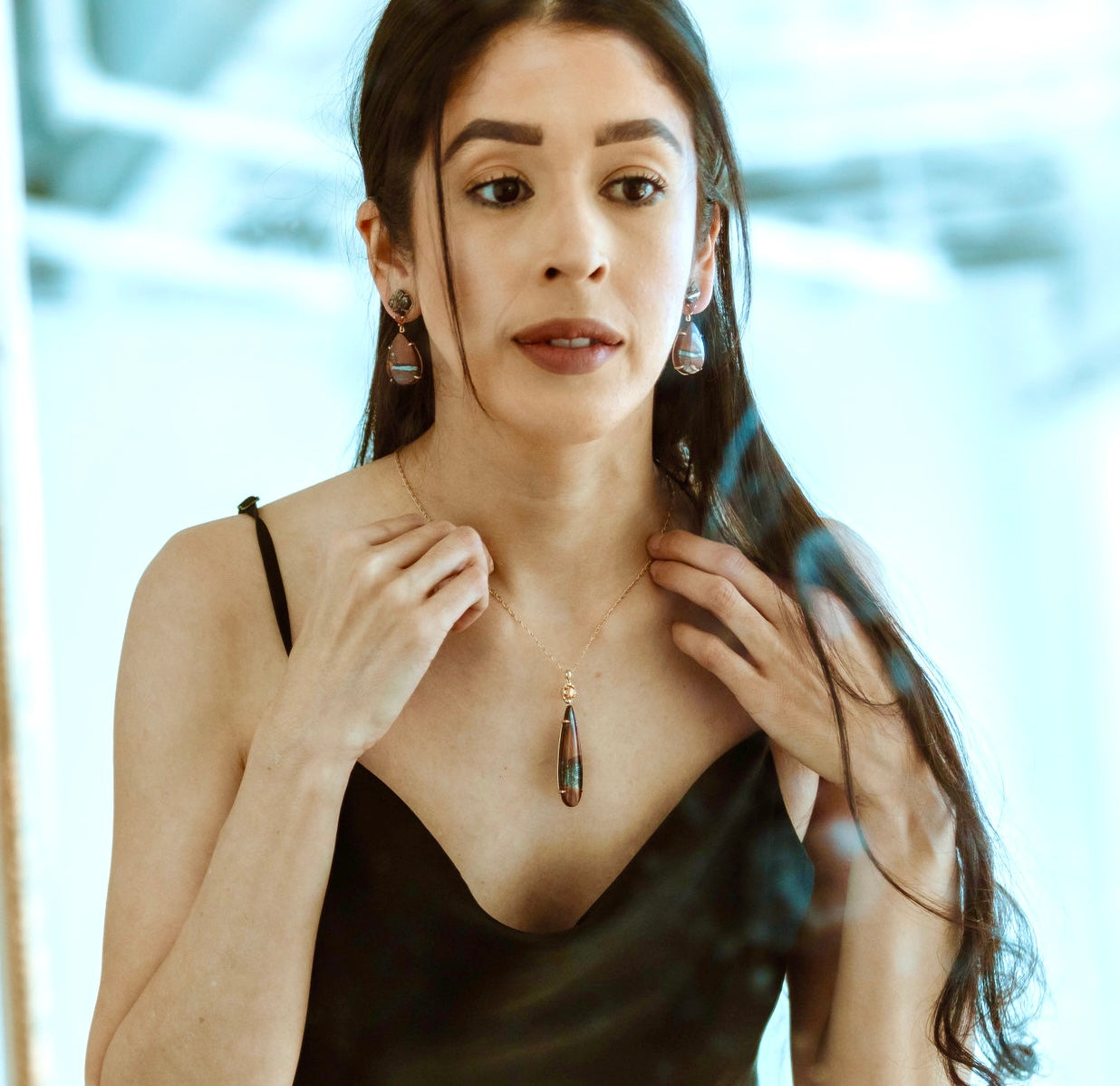 Each piece of Eleux jewelry, while durable for everyday enjoyment, should still be handled with care to keep them looking their best. We recommend storing your pieces in a soft pouch or separate jewelry box to prevent scratches from contact with other jewelry.