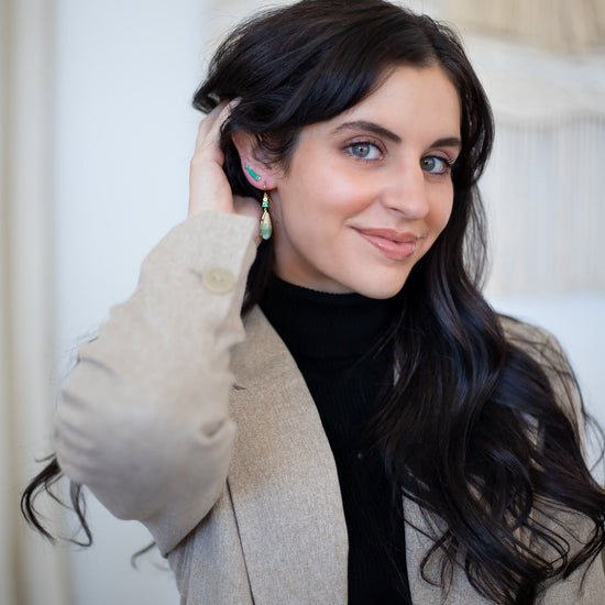 Each piece of Eleux jewelry, while durable for everyday enjoyment, should still be handled with care to keep them looking their best. We recommend storing your pieces in a soft pouch or separate jewelry box to prevent scratches from contact with other jewelry.