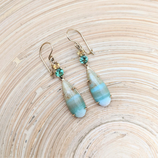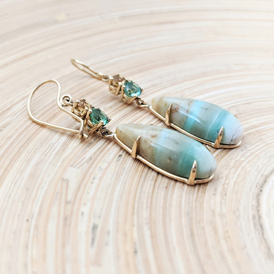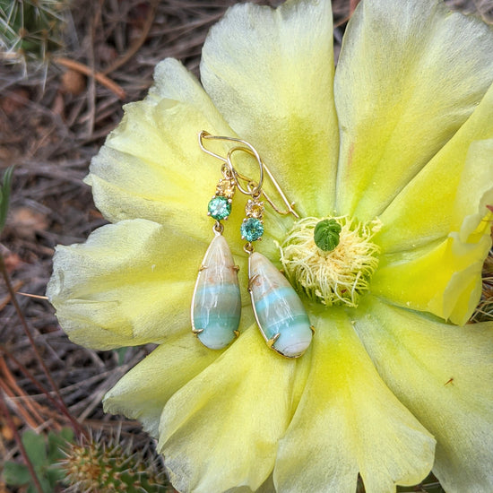 Opalized wood occurs naturally. When the wood of the tree breaks down and thousands of years go by, opaline silica may form in its place. The water in that silica is rich in copper, iron, and manganese. Those copper and manganese deposits are what creates this beautiful blue opal!