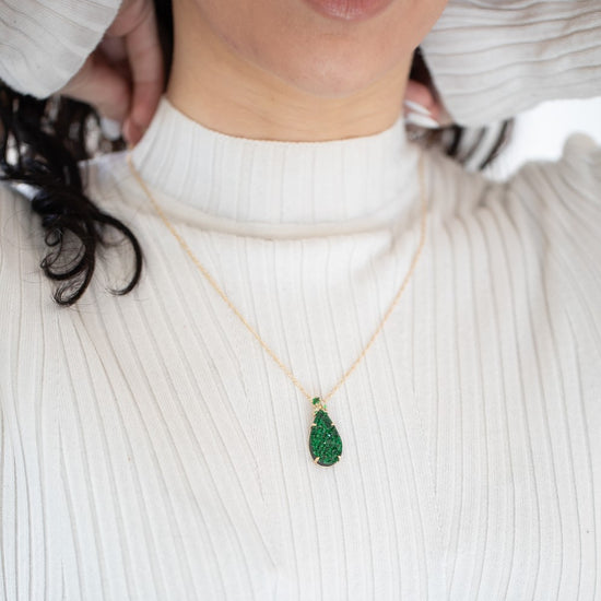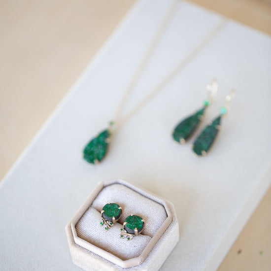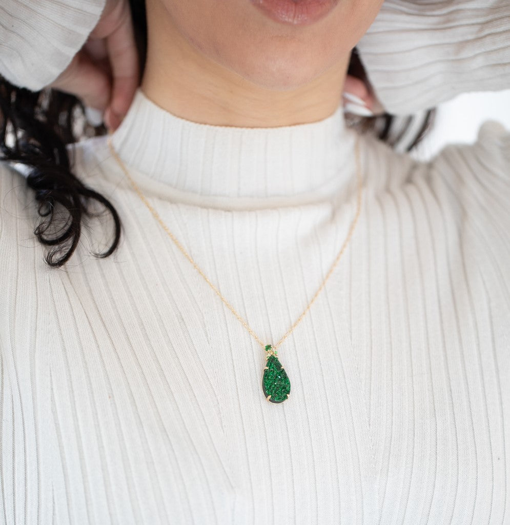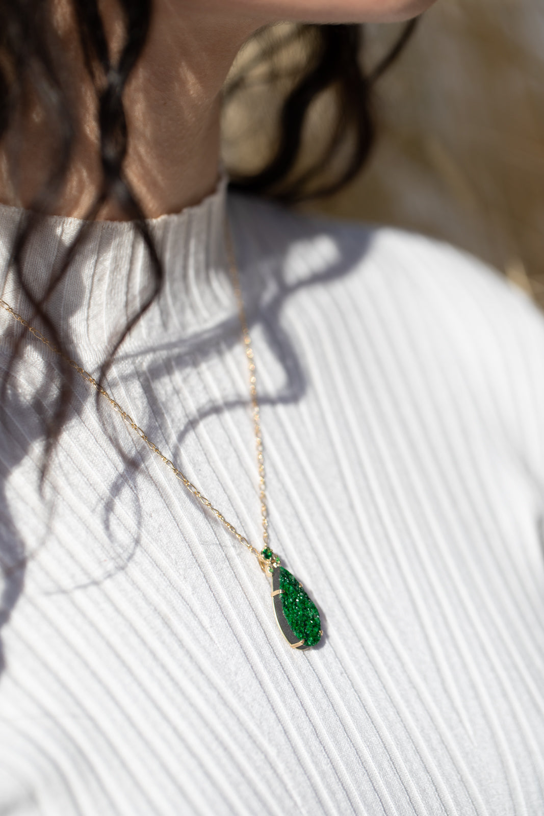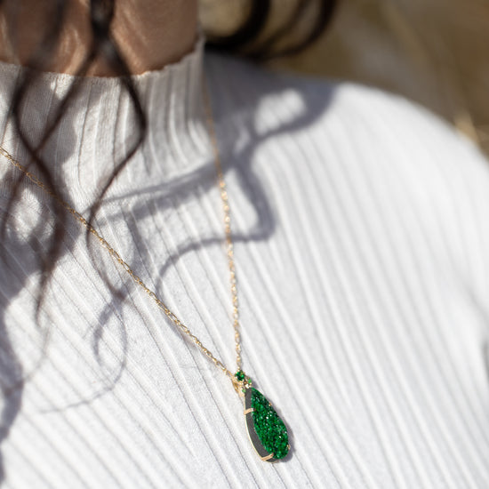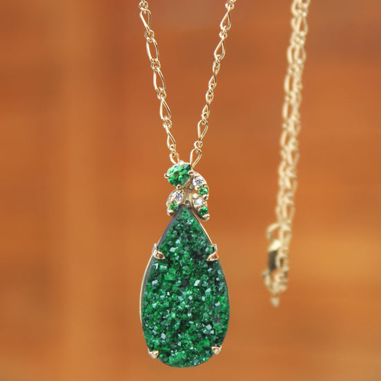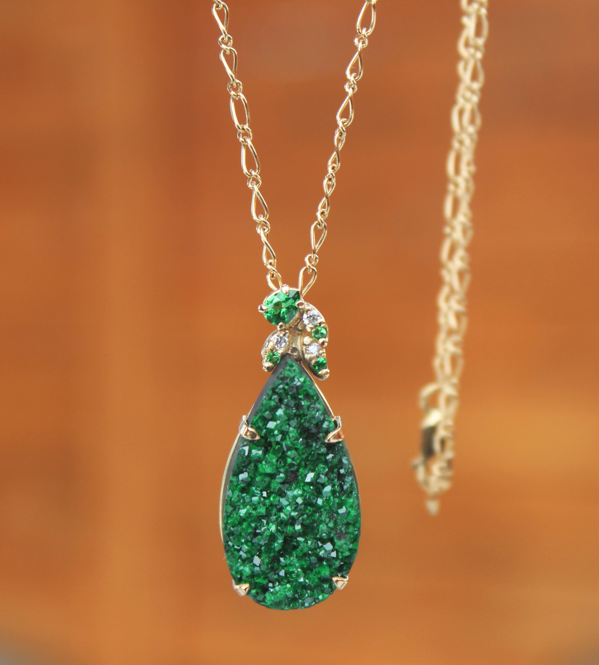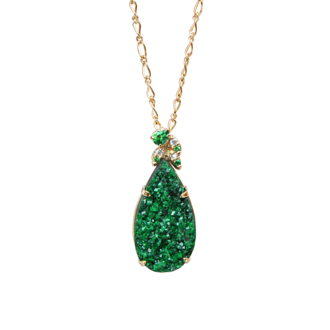 14K yellow gold one-of-a-kind necklace with uvarovite, diamonds, and tsavorite
